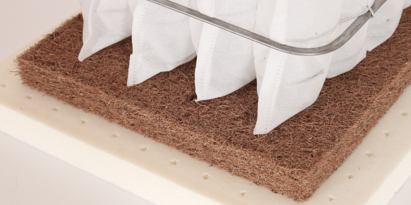 Производство матрасов начинается с пружин. Для матрасных блоков типа Bonnel мы используем толстую проволоку толщиной 1.4, 1.8. 2.2 мм. Для блоков Pocket Spring — термоплавкий клей, который применяется также при сборке матрасов. Он не практически не пахнет и быстро выветривается. Для мешочков независимых пружин берем прочный спанбонд, которые не рвется даже после долгих лет эксплуатации. В самих матрасах сочетаем натуральные и синтетические материалы: шерсть, латекс, кокос, различные пены, синтепон и другие. Все материалы сертифицированы и безопасны для здоровья.